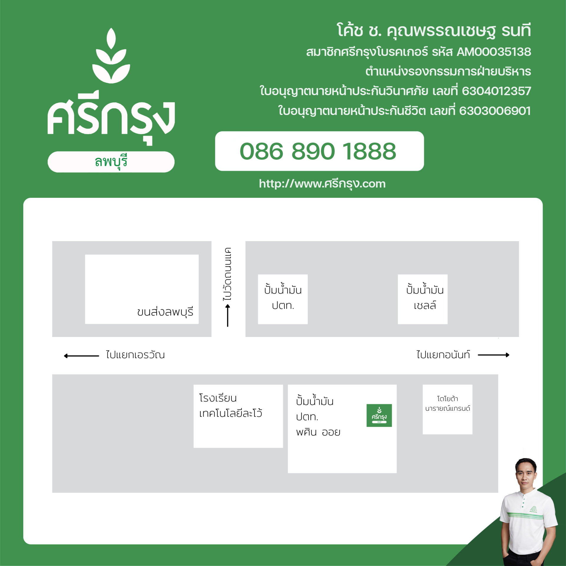 ศรีกรุงลพบุรี เราได้รับอนุญาตอย่างเป็นทางการจากบริษัทศรีกรุงโบรคเกอร์ เปิดให้บริการด้านประกันภัยในราคาสาชิกและอบรมฝึกอาชีพให้กับบุคคลในจังหวัดลพบุรี รวมถึงบุคคลทั่วประเทศครับ เพราะงานของเราเป็นงานออนไลน์แล้ว อยู่ที่จังหวัดไหนก็ทำได้ ทำงานง่ายผ่านมือถือเครื่องเดียว