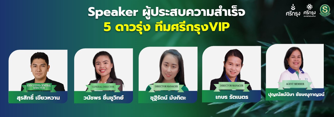 งานเริ่ม เสวนาดาวรุ่ง 5 ตัวตึงทีมศรีกรุง VIP เราคัดเลือกมากจากหลายปัจจัย และเชื่อว่าจะเป็นต้นแบบให้เพื่อนสมาชิกที่เริ่มต้น ได้เห็นวิธีการทำงาน ทำตามได้ เรียงจากซ้ายไปขวา โค้ชโอ๊ต สุรสิทธิ์ เขียวหวาน , โค้ชเจี๊ยบ วนัชพร ชื่นชูวิทย์ , โค้ชผึ้ง ชุฐิรัตน์ มังกิตะ , ครูกุ๊ก เกษร รัตเนตร , ยายณัส ปัญณัสม์นิษา ชัชษณุกาญจน์